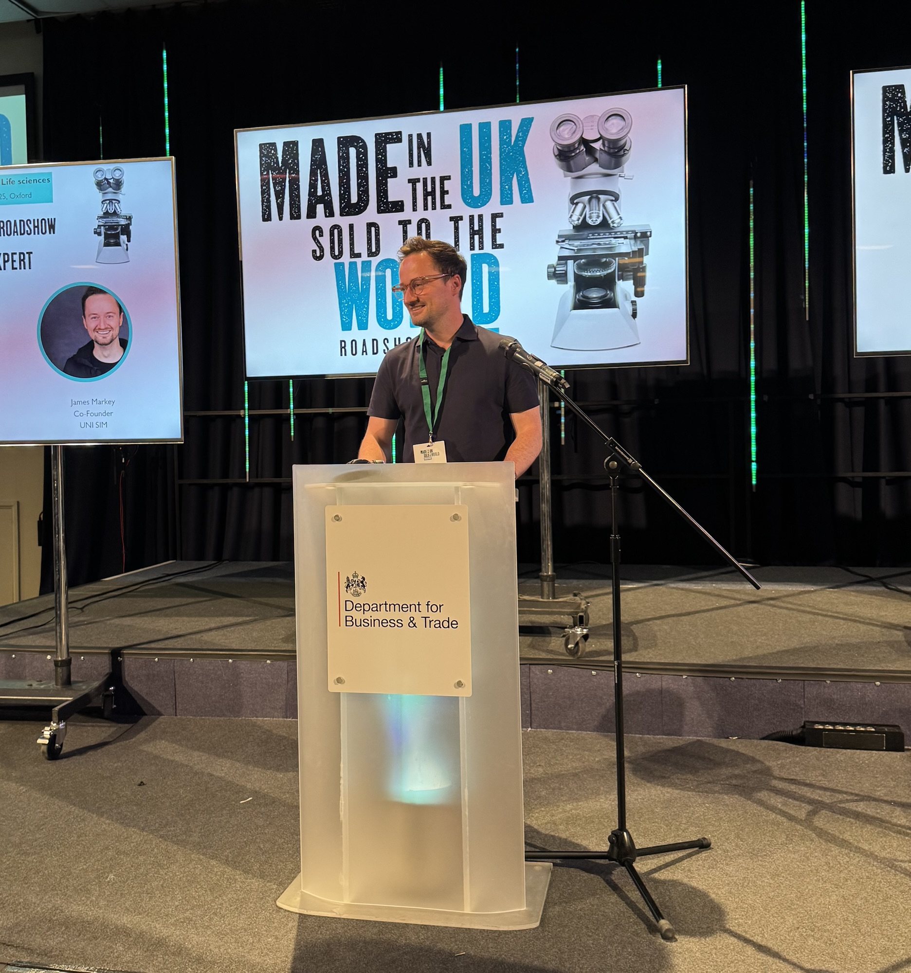James Markey, founder of UNI SIM, was interviewed as part of a panel by the Department for Business and Trade as part of their “Made in the UK, sold to the world” roadshow.